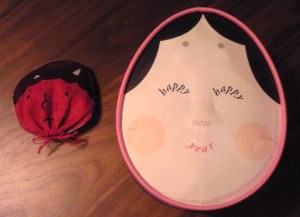 目・鼻・口で happy happy new year と書かれてます。
