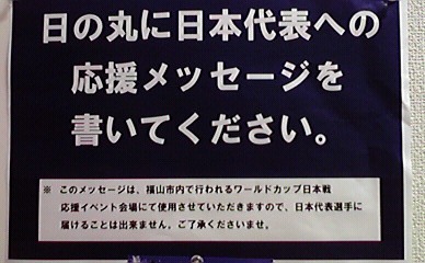 『このメッセージは、福山市内で行われるワールドカップ日本戦