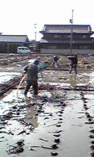泥の中を長い長靴をはいて歩くことが