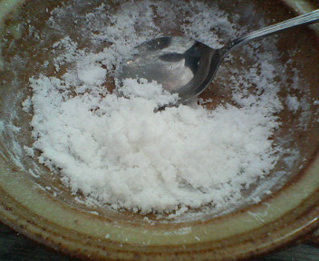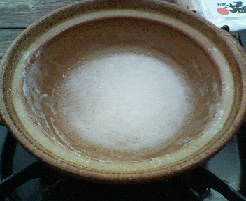 ④さらに10分くらいがんばる・・・塩になってるよ~って感激。火を消してスプーンで回収