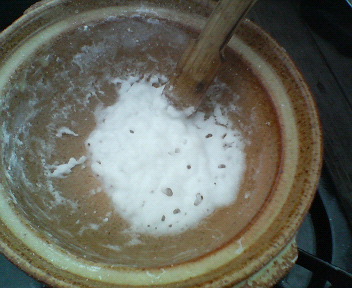 ②とにかく煮る・・・10分くらい経過したらやっと白っぽい物体が現れました